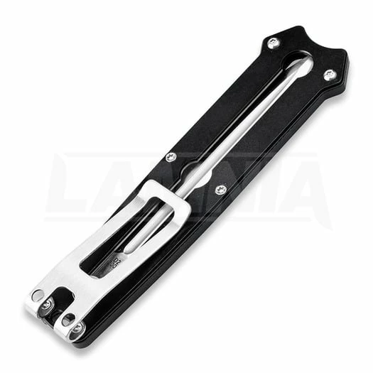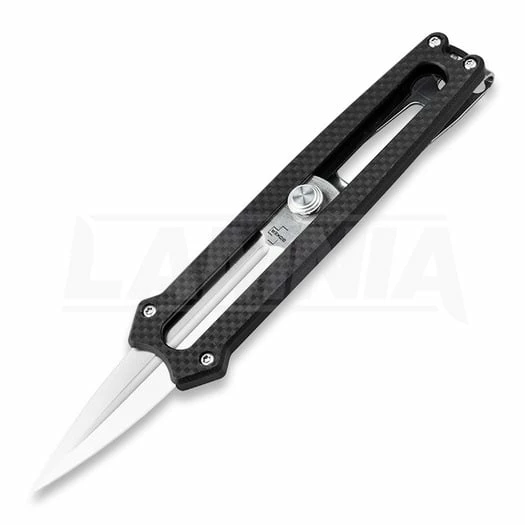 The innovative Boker Plus Slike is a lightweight dagger supplied with a D2 blade ground on both sides that is slid out of the handle frontally. Comparable to the mechanism of the widely used utility knives, the lock is released at a touch of the button and the satin-finished blade is then moved up or down manually. A detent at the halfway point further enhances work safety. It is supplied with a modern flat grind and a pronounced groove. The CNC-machined handle scales made of black G10 lie comfortably in the hand despite the pocket knife’s small size. With lanyard hole and large-sized deep-carry clip (tip-down).