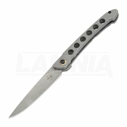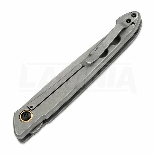 The slim Boker Plus Urban Spillo Flipjoint combines the popular flipper opening with a well thought-out slipjoint mechanism and can thus be easily carried in public. The ball-bearing 440C Spearpoint blade is provided with a robust stonewash finish and is discreetly held in place by a detent ball once opened. Although the small ball effectively prevents unintentional spring-back of the swing-open blade, the resistance can be effortlessly overcome when closing the knife by hand. The milled handle body is made of skeletonised stainless steel and also has a stonewash finish. It does without additional liners and is held together by black handle bolts, while a brass-coloured ring around the pivot screw adds a visual accent. With lanyard hole and clip (tip-up/r).