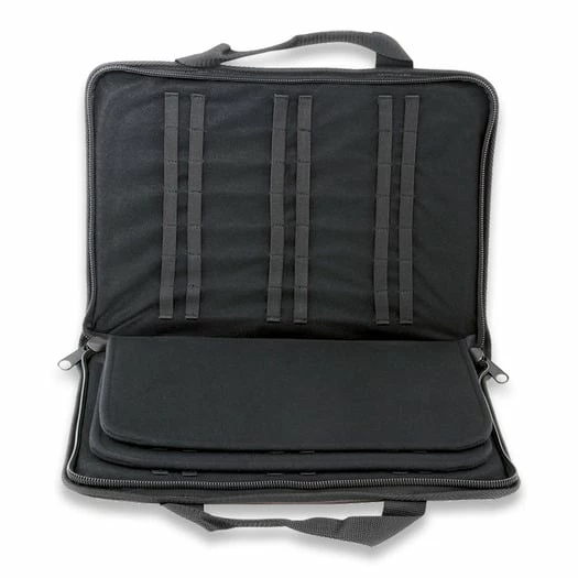 Dimensions: 559 mm x 381 mm; Other Info: Brown leather exterior with Case logo imprint and heavy black nylon handle. 100% cotton lining with thick foam padding and center separator to protect knives on each side. Perfect for storage, travel or display. Holds 66 knives.