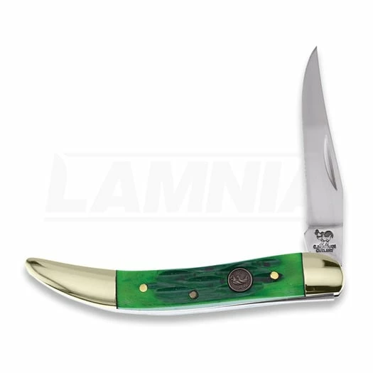 3″ (7.62cm) closed. Mirror finish stainless long clip blade. Green pick bone handle. Nickel silver bolster(s). Inlay shield.