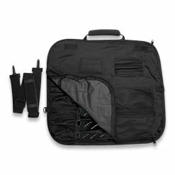 Dimensions: 495 mm x 165 mm. PVC laminated 600 denier polyester construction with nylon straps. Fully zippered. Accommodates up to 8 knives. Shoulder strap. Unfolded dimensions: 495 mm x 457 mm. Color: Black.