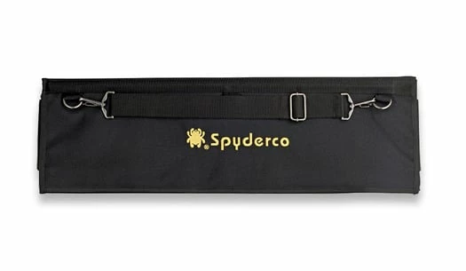 25″ x 8″ closed. 32 interior pockets measure 4 1/2″ x 2 1/2″. Black polyester denier construction with oversized clear viewing pockets. Velcro top and side closures. Adjustable shoulder strap. A secure way to transport, store and display knives.