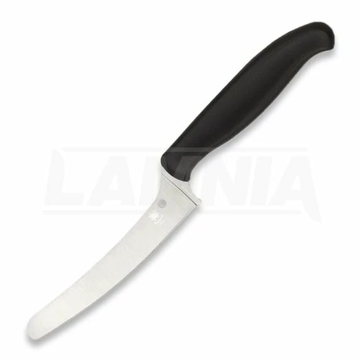 Like a traditional bread knife, Spyderco’s Blunt-Tip Z-Cut combines cutting performance with the enhanced safety of a rounded tip. Easily recognizable by their Z-shaped profiles, offset knives are unique because their handles are above the level of the blade instead of in line with it. Like a classic chef’s knife, this aligns the blade’s edge with the finger knuckles while providing ample clearance for them when working on a cutting board. Unlike a chef’s knife, however, offset knives are much smaller, lighter, and much more versatile.